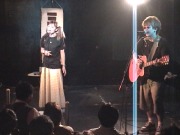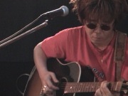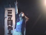 この日のステージは、後方から会場に向かってバックライトが当たっていたためか、客席が良く見渡せたらしく、地元と言うことも重なって観客の中に馴染みの顔もチラホラ。流さんの「照れるぜ」の一言も飛び出しました。「三角堂からの暑中見舞い届いた?」と2000年夏のツアーチラシを縮小したような暑中見舞いハガキを取り出し、会場のみんなに確認。しばらく、暑中見舞いネタのMCが続きます。