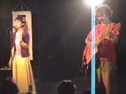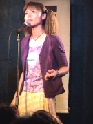 それから、会場ではアンコールの嵐。程なく、再びステージに登場した三角堂の二人は、お揃いの黒い「REST・Tシャツ」を着ていました。高校生の頃からこのライブハウスにお世話になっている流さんですが、「REST・Tシャツ」を頂いたのは初めてということで、感激の流さんでした。